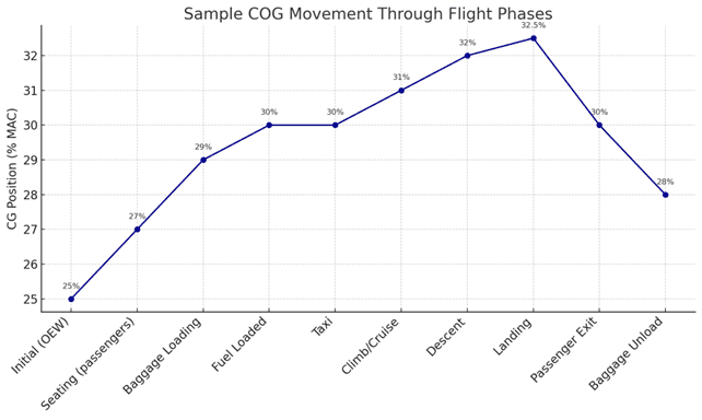 Insgesamt ist das Belastungsdiagramm ein unverzichtbares Werkzeug in der Luftfahrt, das zur sicheren und effizienten Beladung von Flugzeugen beiträgt und sicherstellt, dass alle Flüge innerhalb der zulässigen COG-Grenzen durchgeführt werden.