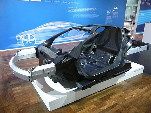Hierbei ist der Einsatz von Leichtbauwerkstoffen entscheidend: 21,3 Prozent des Fahrzeugmasse sind kohlenstofffaserverstärkte Kunststoffteile (CFK), weitere 22,5 Prozent sind Leichtmetalle. Insbesondere sind die Leichtbaulösungen im Bereich der Karosserie und des Monocoques interessant.